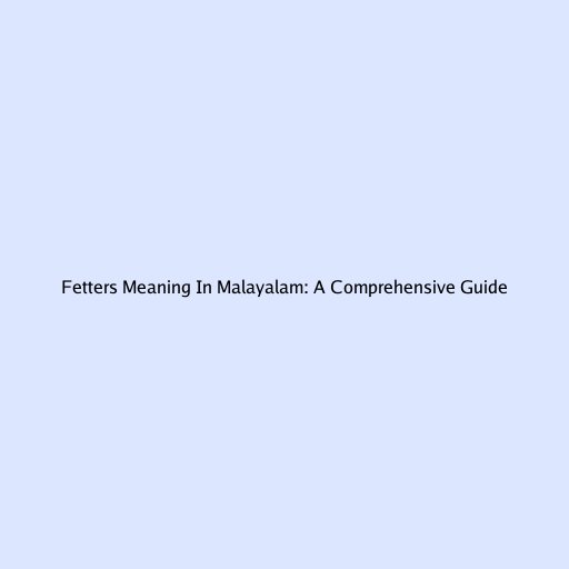 Fetters Meaning in Malayalam: A Comprehensive Guide