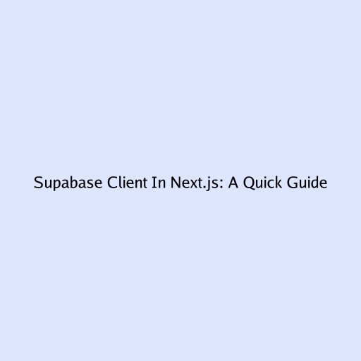 Supabase Client in Next.js: A Quick Guide